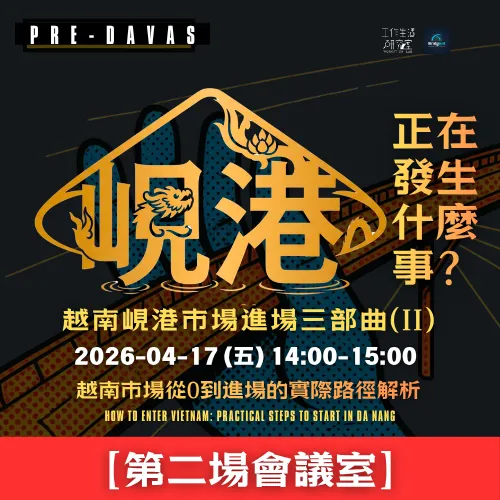 在東南亞市場快速變動的此刻,峴港正成為新一波創業、投資與國際合作的關注焦點。本系列三場線上講座,將帶你從市場趨勢、進場路徑到實際行動策略,完整理解如何用最低成本切入一個正在成長的市場,並掌握從觀望到落地的關鍵節奏。